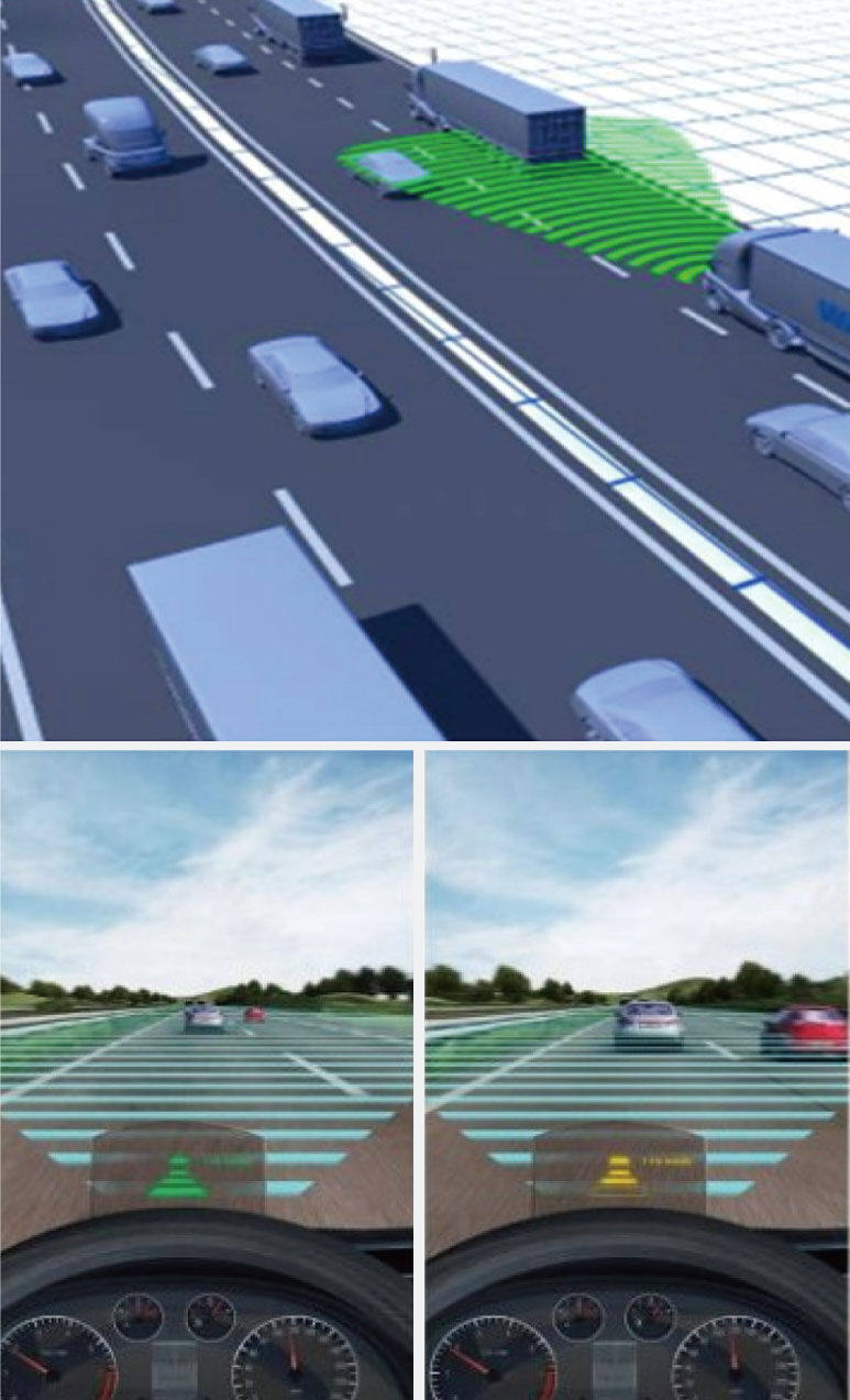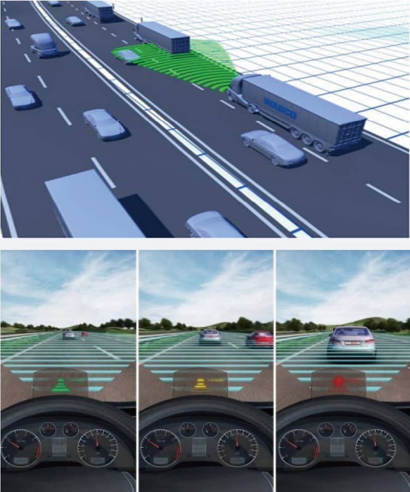 It judges the potential collision risk by sensing and calculating the distance between the vehicle and the front vehicle during driving, and immediately issues a warning to prevent collision.